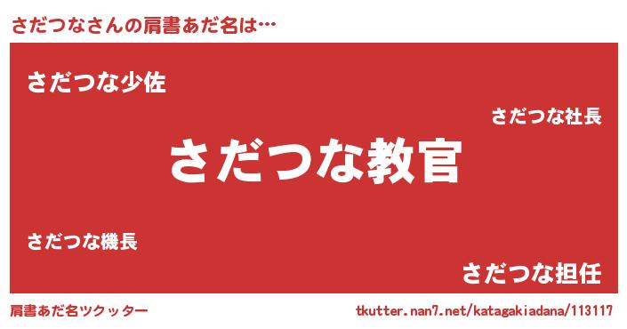 | 男性向けラノベタイトル風あだ名 | 『この素晴らしい世界にさだつなを!』 |