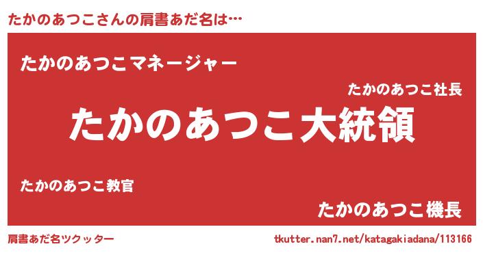 | 意味不明あだ名 | 『たかのあつこフォーエバー』 |