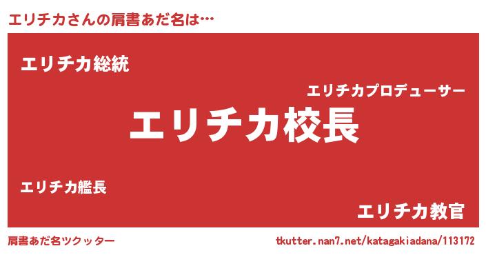 | ヒーロー風カッコイイあだ名 | 『ネオエリチカ』『超時空戦士エリチカ』 |