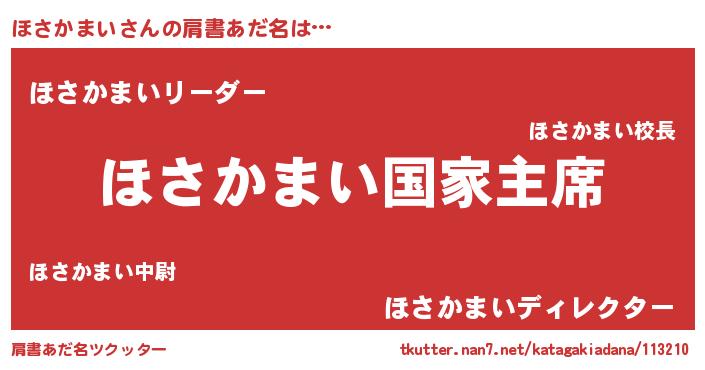 | 今でしょ! | 誰がやるか?『ほさかまい君でしょ!』 |