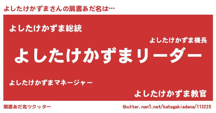 | ポケモン風あだ名 | 『ヒヨシタケカズマ』『ヨシセウス』 |