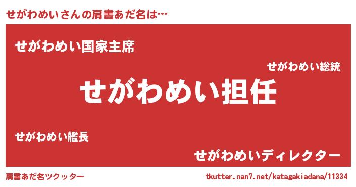 | 意味不明あだ名 | 『永久保存せがわめい』『自称せがわめい』 |