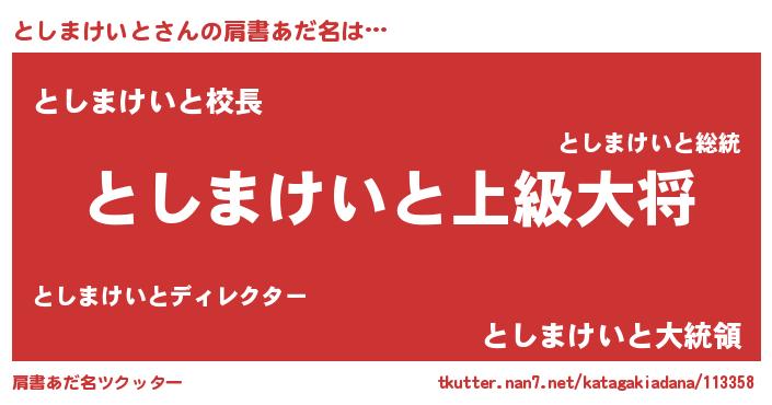 | 胡散臭い通販商品みたいなあだ名 | 『絶対に幸福をもたらす水素水…その名も「としまけいと」』 |