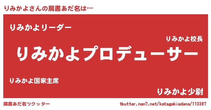 | ヘコむあだ名 | 『りみぷりん』『りみかよ(震え声)』 |