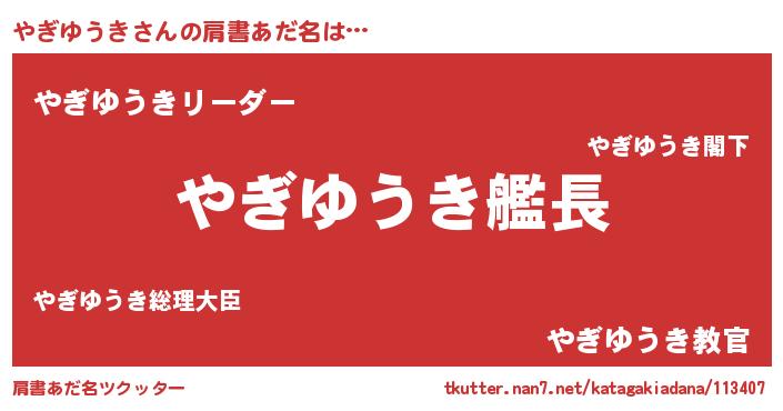 | 欧米人風あだ名 | 『やぎゆうき・ステッグマイヤー』 |