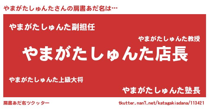 | ヘコむあだ名 | 『やまにゅー』『やまがたしゅんた(遠い目)』 |