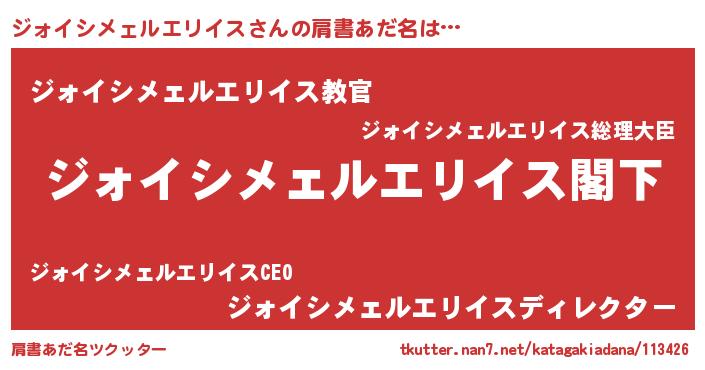 | 意味不明あだ名 | 『自称ジォイシメェルエリイス』 |