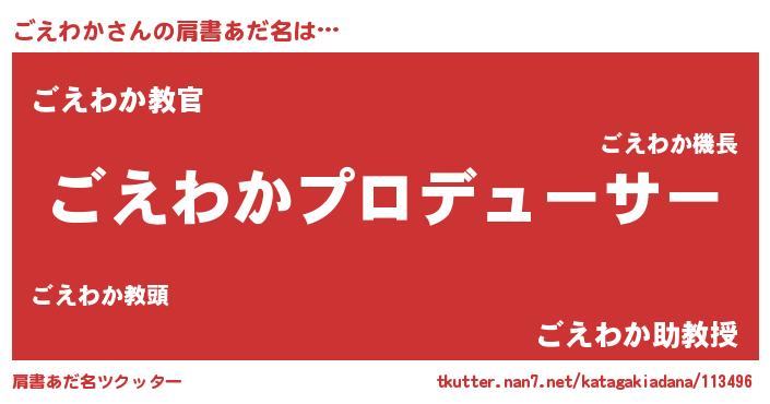 | ヒーロー風カッコイイあだ名 | 『仮面ゴエダー』『慈愛の使者ごえわか』 |