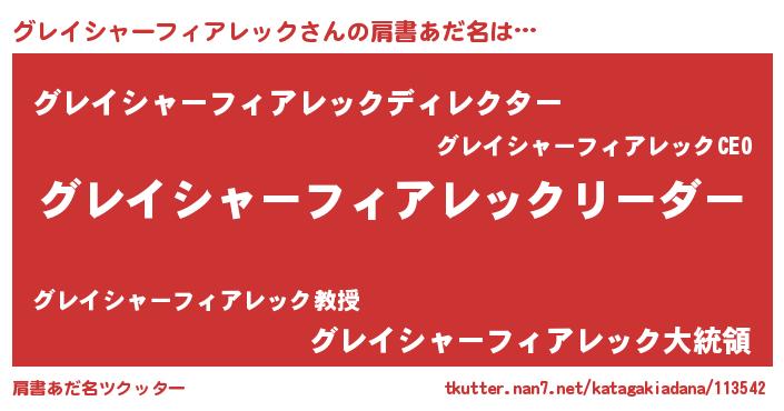 | 男性向けラノベタイトル風あだ名 | 『グレイシャーフィアレックの嫁は女の子じゃないと思った?』 |