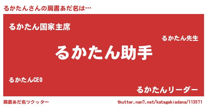 | 欧米人風あだ名 | 『ダニエルるかたん』『ウサインるかたん』 |