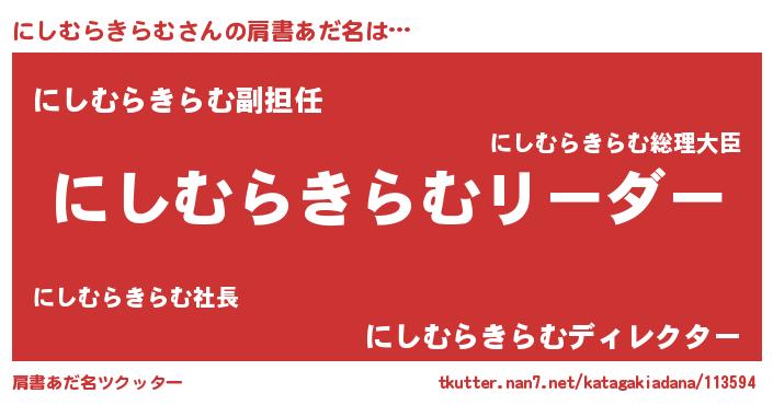 | 意味不明あだ名 | 『とにかく怪しいにしむらきらむ』 |