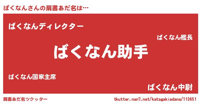 | ヒーロー風カッコイイあだ名 | 『慈愛の使者ばくなん』『ネオバクナン』 |