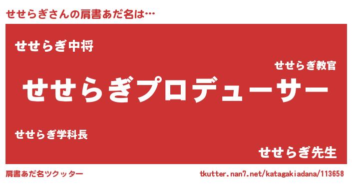 | 男性向けラノベタイトル風あだ名 | 『はたらくせせらぎさま!』 |