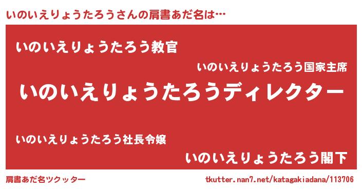 | 意味不明あだ名 | 『住所不定無職いのいえりょうたろう(68歳)』 |