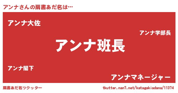 | 意味不明あだ名 | 『とにかく怪しいアンナ』『自称アンナ』 |