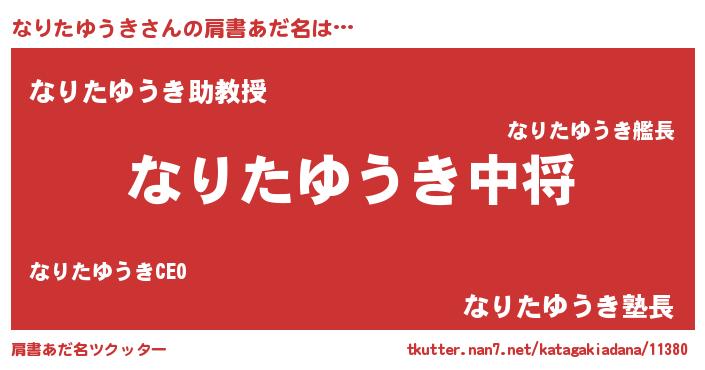| 男性向けラノベタイトル風あだ名 | 『転生したらなりたゆうきだった件』 |