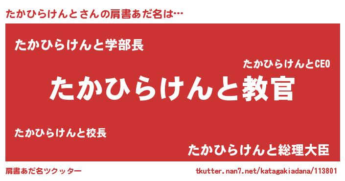 | 男性向けラノベタイトル風あだ名 | 『この素晴らしい世界にたかひらけんとを!』 |