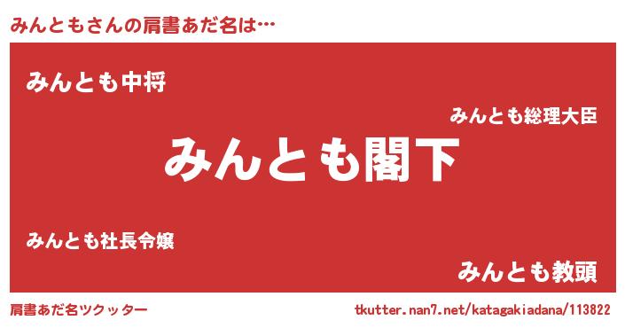 | 男性向けラノベタイトル風あだ名 | 『Re:みんともから始める異世界生活』 |