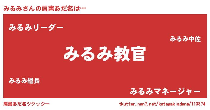 | ヘコむあだ名 | 『みるお』『みるっふぃ~』 |