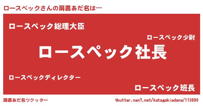 | 欧米人風あだ名 | 『マイケルロースペック』 |