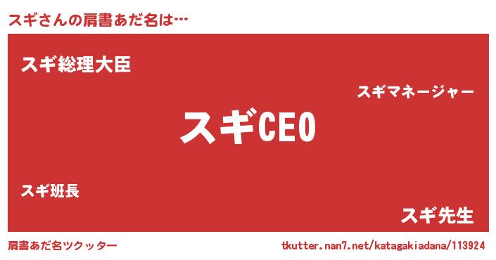 | ヒーロー風カッコイイあだ名 | 『スーパースギ』『ウルトラスギマン』 |