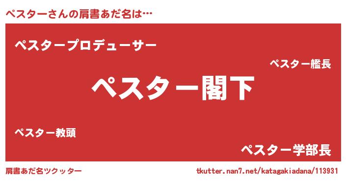 | 意味不明あだ名 | 『自称ペスター』『永久保存ペスター』 |