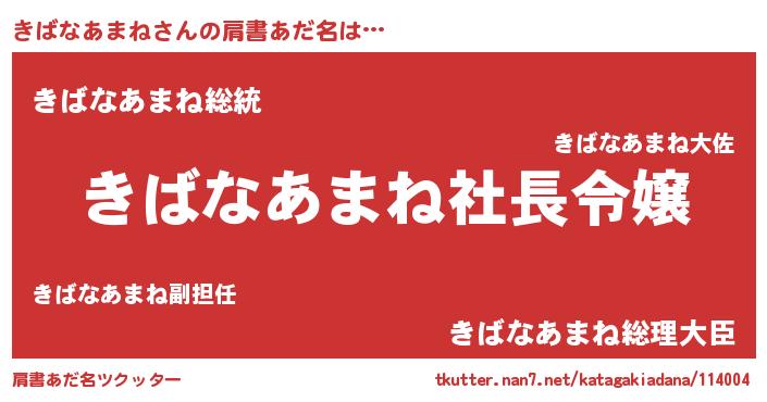 | 男性向けラノベタイトル風あだ名 | 『きばなあまねの憂鬱』 |
