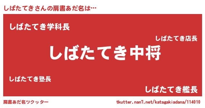 | 男性向けラノベタイトル風あだ名 | 『転生したらしばたてきだった件』 |