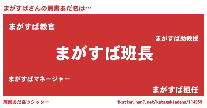 | ヘコむあだ名 | 『まがっ子』『まがすば(笑)』 |