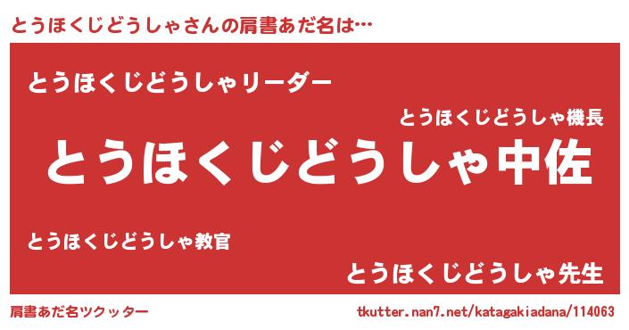 | ヘコむあだ名 | 『とうお』『とうほくじどうしゃ(震え声)』 |