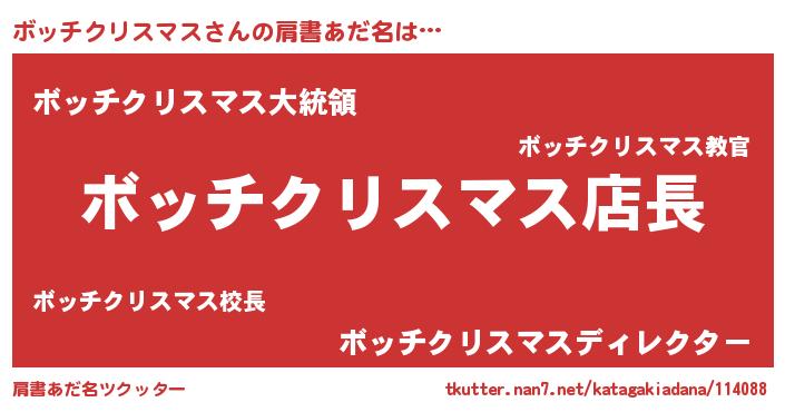 | 男性向けラノベタイトル風あだ名 | 『ボッチクリスマスの憂鬱』 |