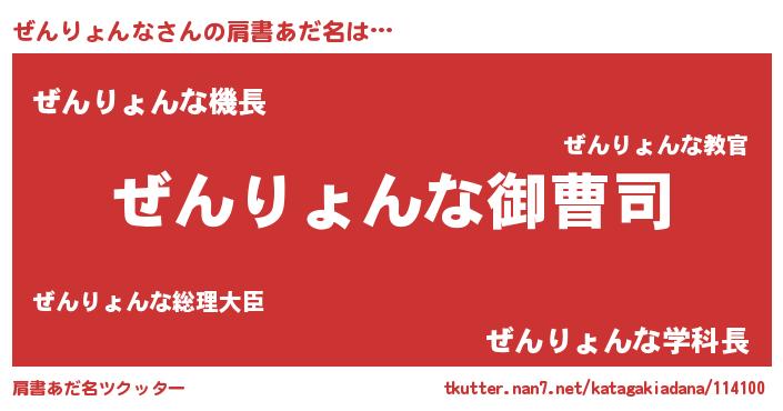 | 男性向けラノベタイトル風あだ名 | 『ぜんりょんなの憂鬱』 |