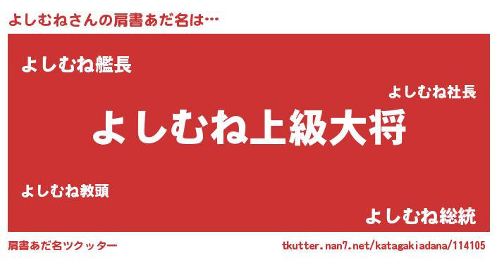| 女子向けラノベタイトル風あだ名 | 『よしむねの玉の輿計画!』 |