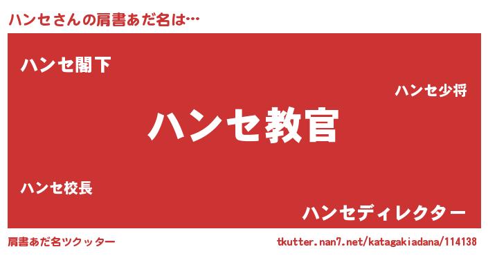 | 男性向けラノベタイトル風あだ名 | 『魔弾の王とハンセ』 |