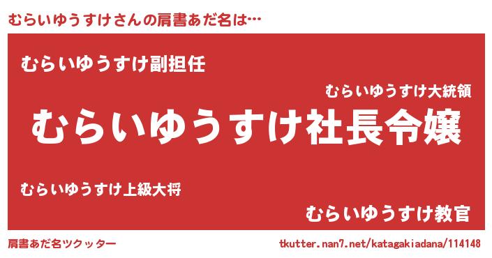 | ヘコむあだ名 | 『むらもー』『むらいゆうすけ(遠い目)』 |
