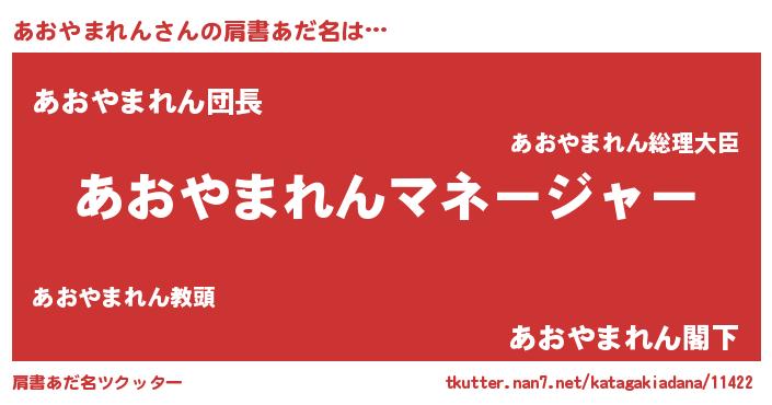 | 欧米人風あだ名 | 『アンジェラ・あおやまれん』 |