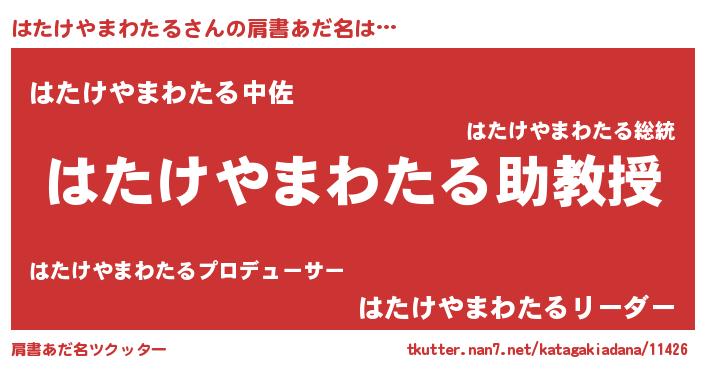 | 男性向けラノベタイトル風あだ名 | 『おまえをオタクにしてやるから、俺をはたけやまわたるにしてくれ! 』 |