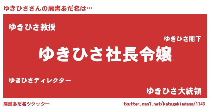 | 女子向けラノベタイトル風あだ名 | 『(仮)ゆきひさのやんごとなき事情』 |