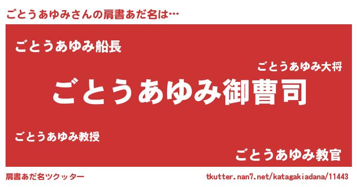 | 胡散臭い通販商品みたいなあだ名 | 『モテモテ間違いなし霊験あらたかなお札…その名も「ごとうあゆみ」』 |