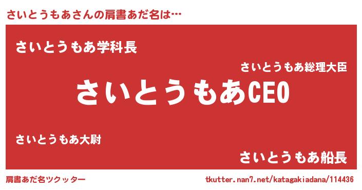 | 男性向けラノベタイトル風あだ名 | 『さいとうもあの憂鬱』 |