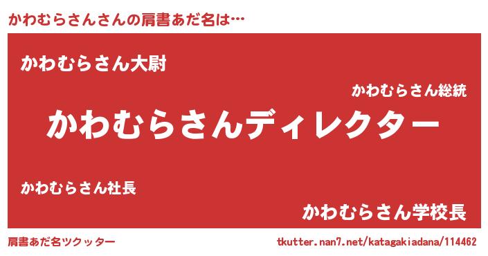 | ヘコむあだ名 | 『かわにゅー』『かわむらさん(爆)』 |