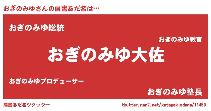 | 男性向けラノベタイトル風あだ名 | 『おぎのみゆ~年齢イコール彼女いない歴の魔法使い~』 |