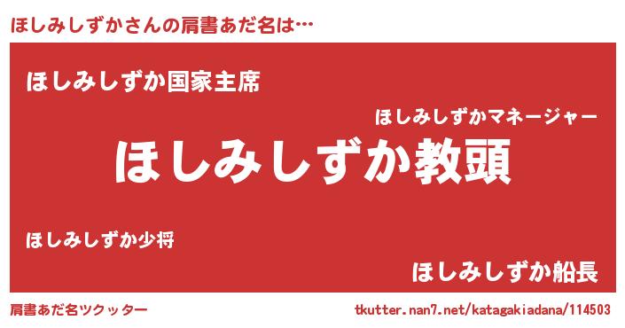 | 意味不明あだ名 | 『永久保存ほしみしずか』 |