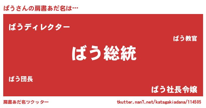 | 男性向けラノベタイトル風あだ名 | 『Re:ばうから始める異世界生活』 |