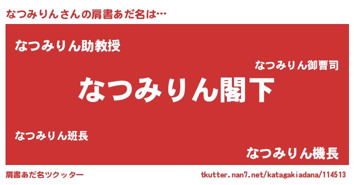 | 男性向けラノベタイトル風あだ名 | 『Re:なつみりんから始める異世界生活』 |
