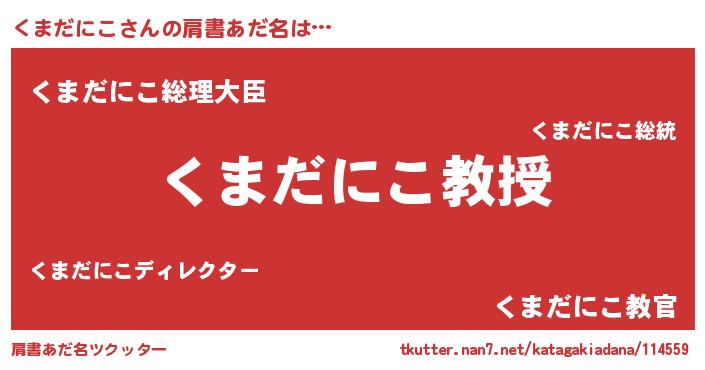| 男性向けラノベタイトル風あだ名 | 『おまえをオタクにしてやるから、俺をくまだにこにしてくれ! 』 |