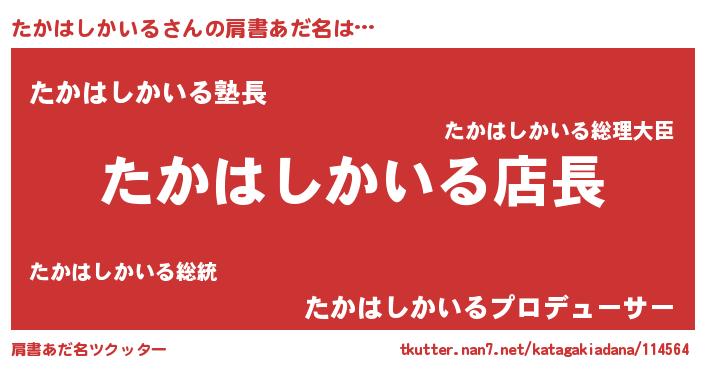 | ポケモン風あだ名 | 『タカチュウ』『ヒタカハシカイル』 |