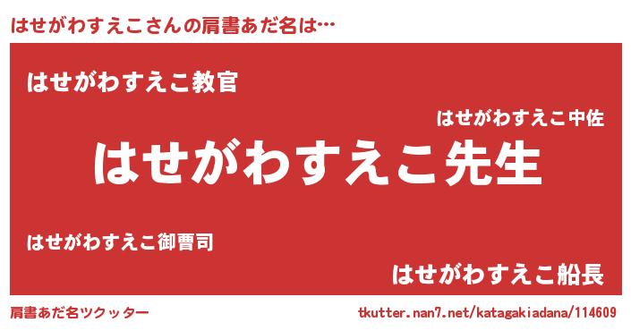 | 意味不明あだ名 | 『永久保存はせがわすえこ』 |