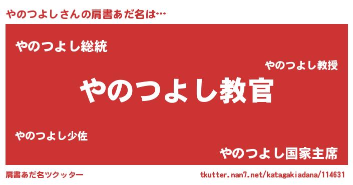 | ヒーロー風カッコイイあだ名 | 『仮面ヤノダー』『超時空戦士ヤノツヨシ』 |