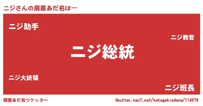 | 男性向けラノベタイトル風あだ名 | 『魔法科高校のニジ』『魔弾の王とニジ』 |